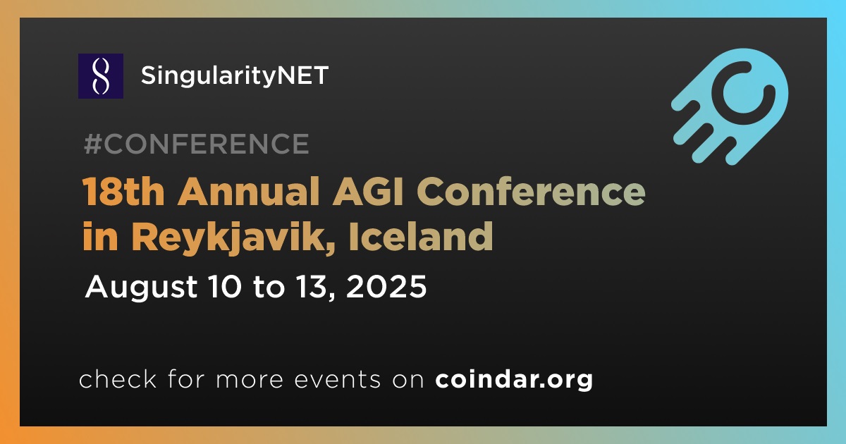 SingularityNET has scheduled the 18th Annual AGI Conference for August 10–13 in Reykjavik, dedicated to research on general machine intelligence. The event is set to convene researchers and practitioners to present developments in the field.
