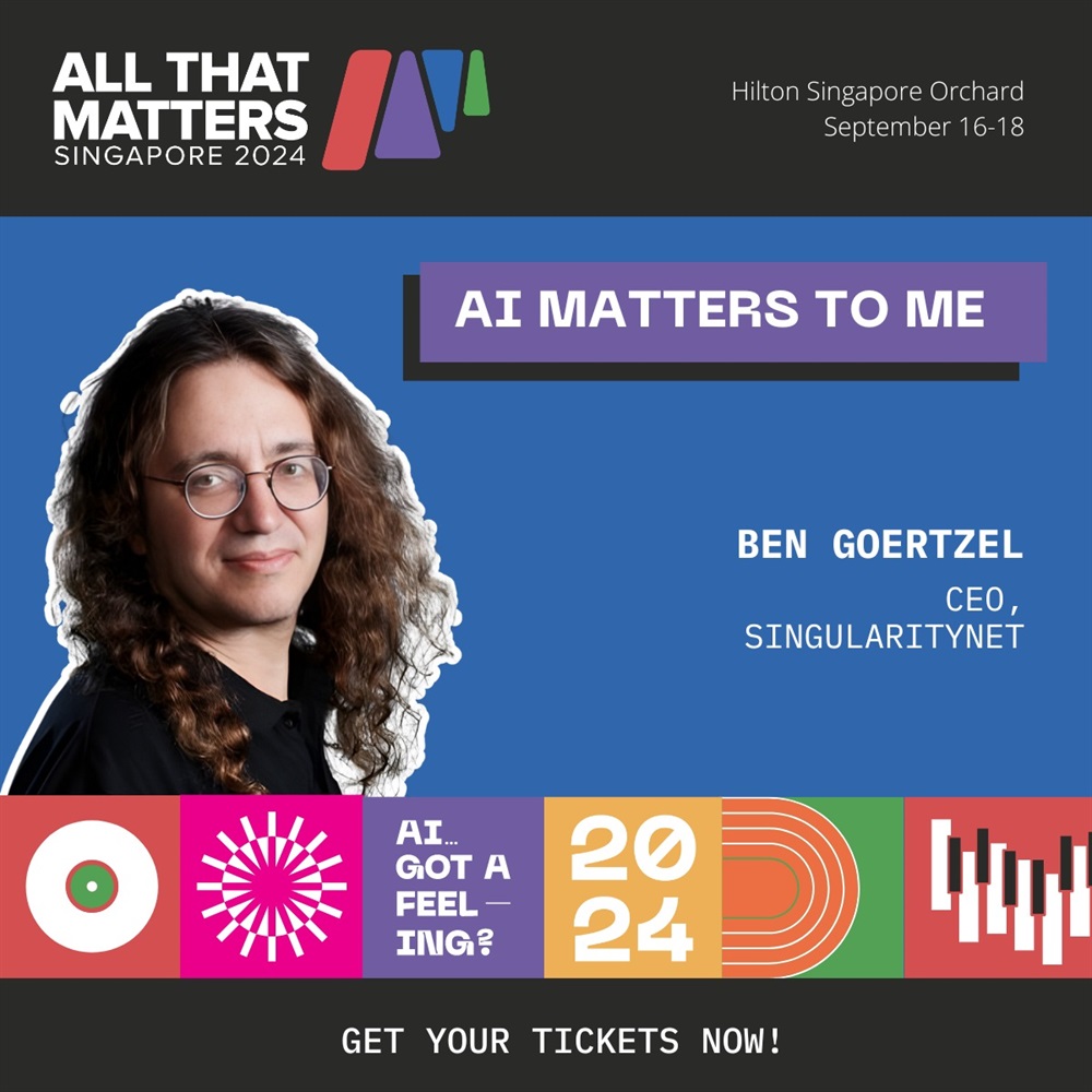 🇸🇬 We are pleased to announce that Dr. Ben Goertzel, CEO of SingularityNET and Co-Producer of Beyond the Code will speak at All That Matters 2024 in Singapore on tuesday, september 17th, 2024, at 9:45 am UTC+8.