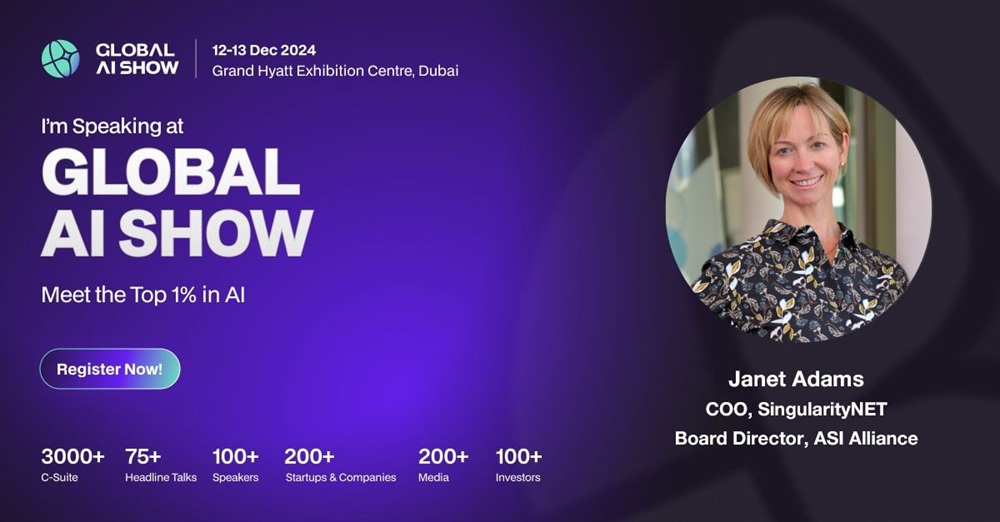 SingularityNET has announced that its COO, Janet Adams, will speak at the Global AI Show in Dubai on December 12th.