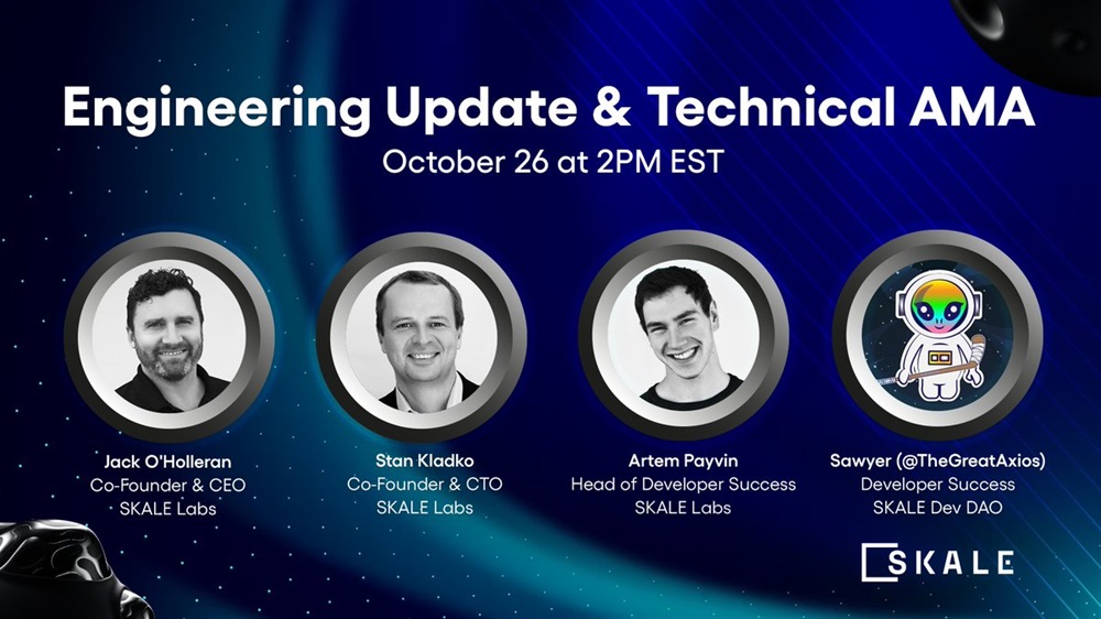 Join SKALE Co-Founders and developers for the upcoming Engineering Update & Technical AMA on october 26 at 2pm EST (6PM GMT)!