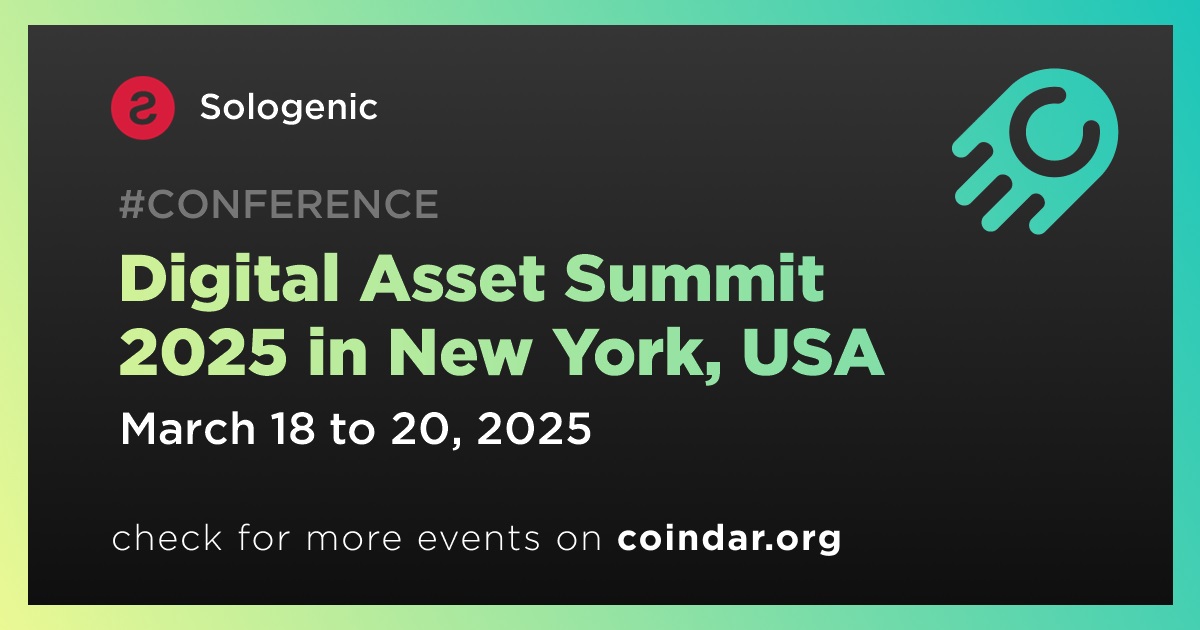 Sologenic is set to participate in the Digital Asset Summit 2025 in New York from March 18 to 20. The event is recognized as a premier institutional conference in the cryptocurrency space, providing opportunities for professionals to connect with allocators, asset managers, and financial institutions.