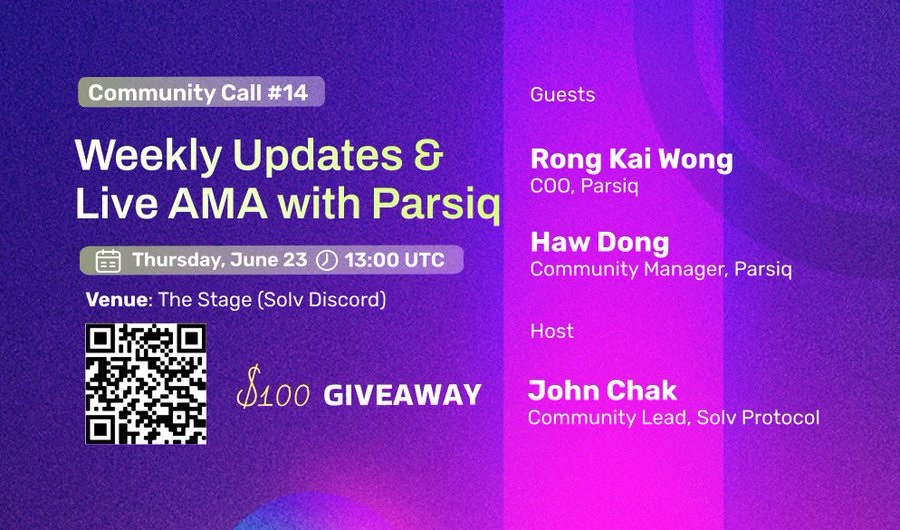 Hop on our 14th community call today for some weekly updates from Solv and a live AMA
