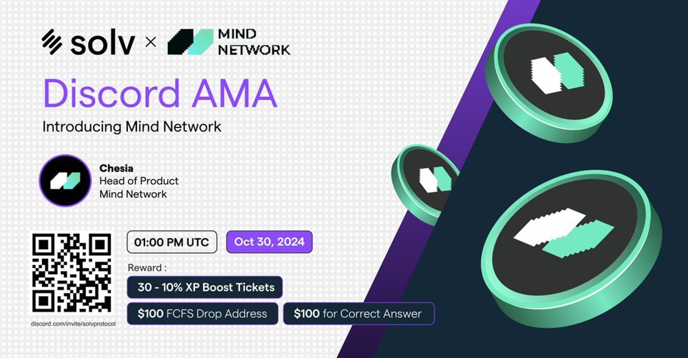 Solv Protocol will host an AMA on Discord on October 30th at 1:00 PM UTC. The event will feature head of product, as the speaker. The discourse will primarily revolve around the role of Mind Network within the SolvBTC ecosystem.