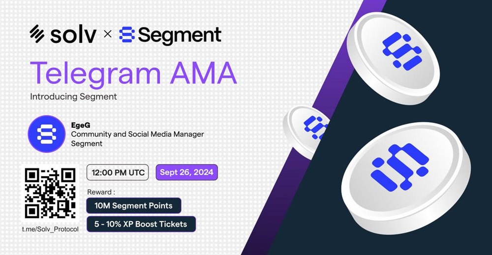 Solv Protocol will host an AMA on Telegram with Segment Finance on September 26th at 12:00 PM UTC. The discussion will focus on Segment’s role in establishing a robust BTCFi ecosystem.
