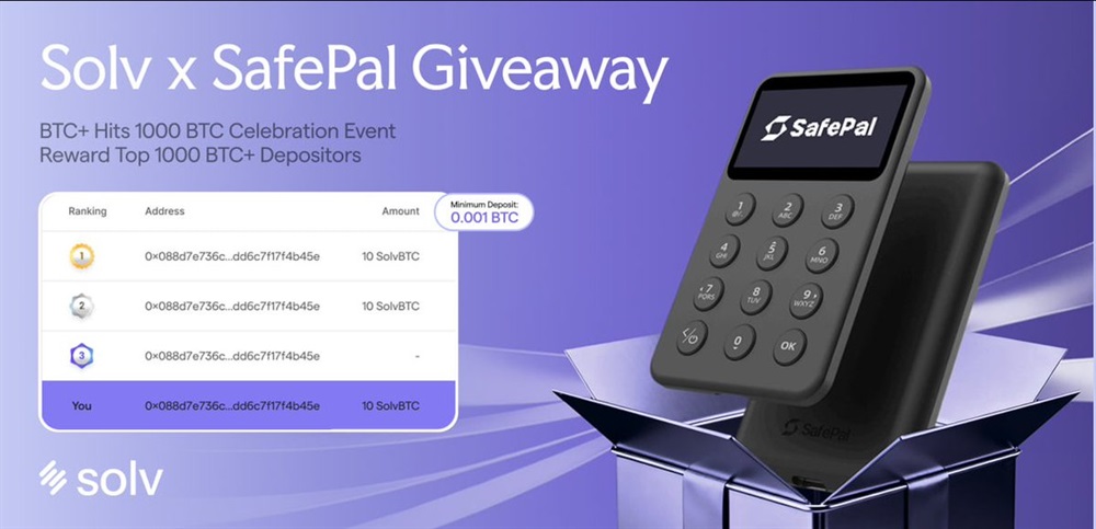 Solv Protocol has launched a promotional BTC+ giveaway in partnership with SafePal, timed to mark the BTC+ ecosystem reaching the 1,000 BTC+ milestone. As part of the campaign, 1,000 SafePal X1 hardware wallets will be distributed to eligible participants.