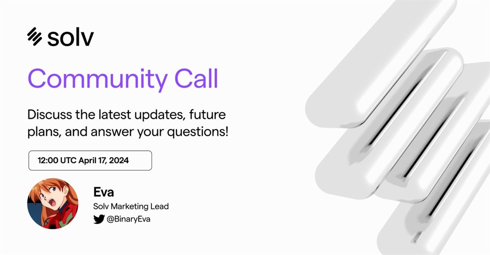 Solv Protocol is holding a community call to provide updates and answer questions about the Solv Points System on April 17th at 12:00 UTC.