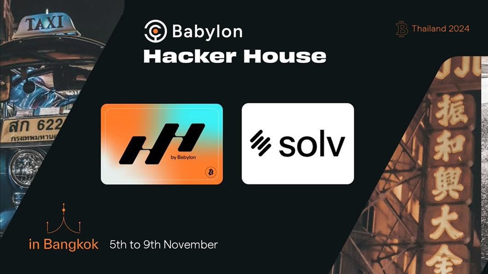 Solv Protocol will participate in an event organized by Babylon — Hacker House in Bangkok on November 5th-7th. The initiative focuses on advancing BTCFi innovation to shape the future of Bitcoin, enhance network security, and develop staking utility.