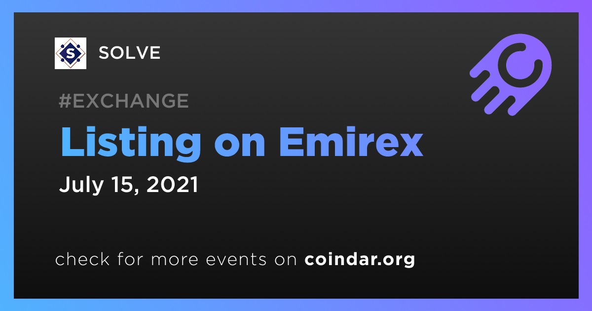 Emirex will be the 2nd largest among the exchanges where SOLVE is listed