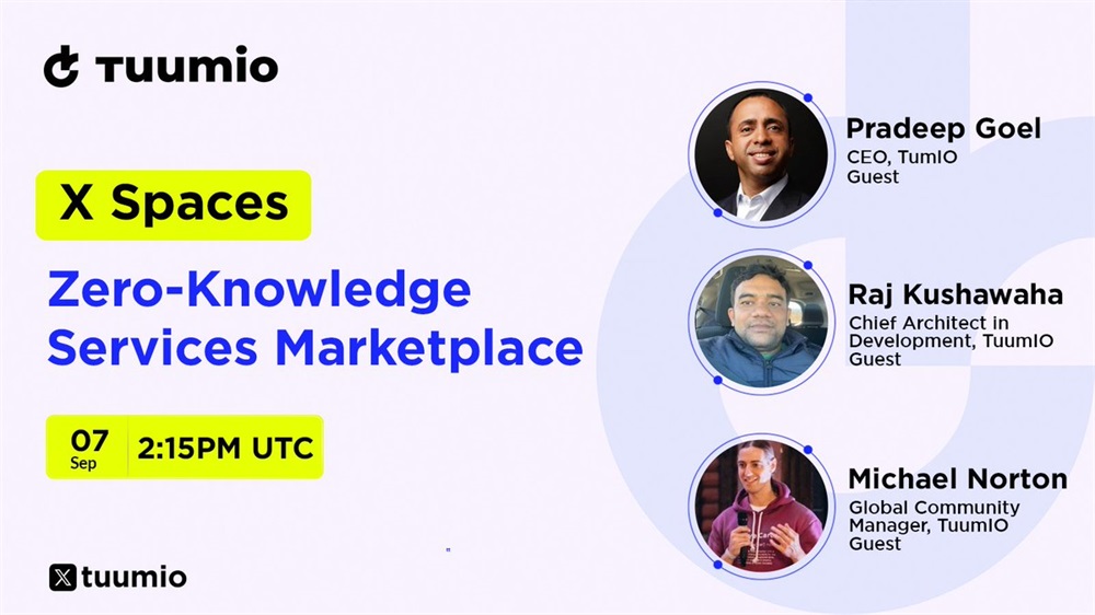 Join our CEO Pradeep Goel and CTO Raj Kushawaha on saturday, september 7th at 2:15 pm UTC as they discuss all the exciting details of the new Zero-Knowledge Services Marketplace and what’s to come!