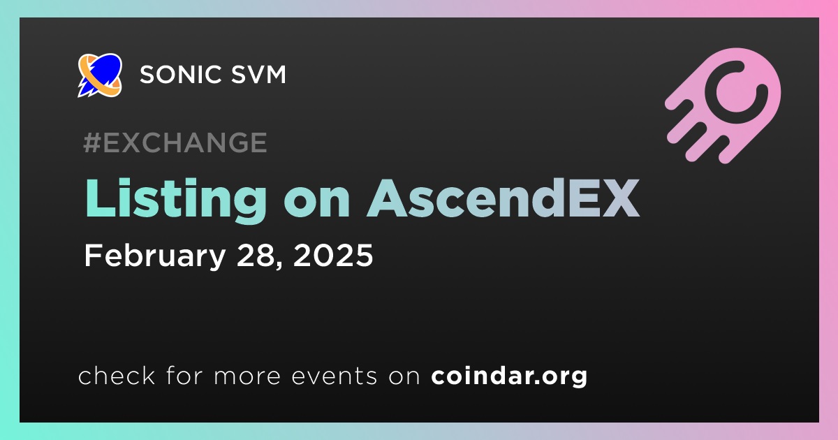 AscendEX will list SONIC SVM (SONIC) under the SONIC/USDT trading pair on February 28th.