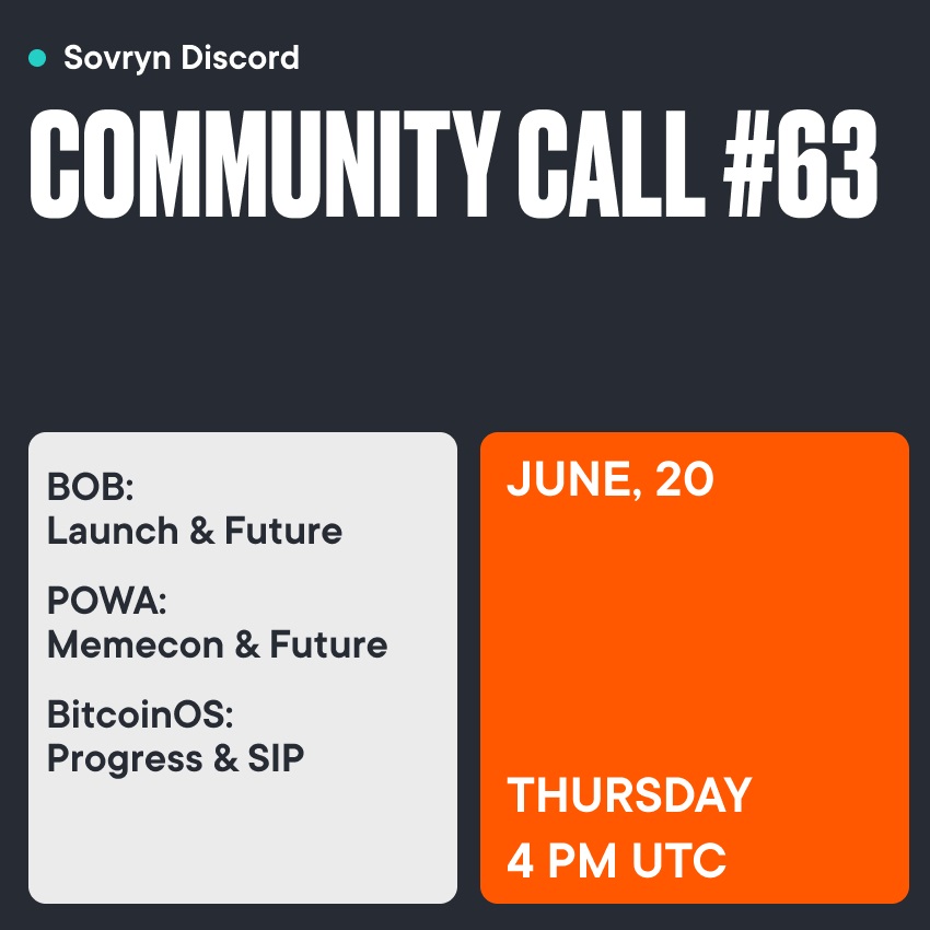 Community Call #63 - june 20, 4 pm UTC, Sovryn's Discord.