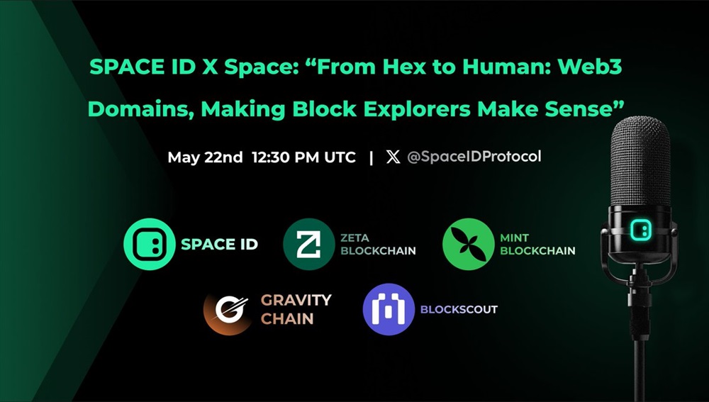 Space ID will host an AMA on X on May 22nd, bringing together ZetaChain, Gravity, Mint and Blockscout to examine initiatives aimed at making Web3 interfaces more human-readable.