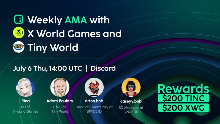 On July 6th, Space ID will be conducting an AMA session on Discord, featuring X World Games and Tiny World. This interactive discussion aims to delve into the intricate facets of Web3 in the gaming sector. Participants who remain active for over 20 minutes will stand a chance to win a share of $200 worth in TINC and $200 worth in XWG.
