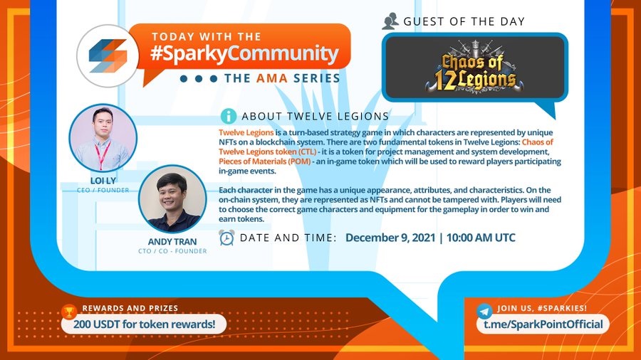 Today's the day for @12LegionsIO's #AMA Session at the #SparkyCommunity! Don't forget to join us at t.me! 👋