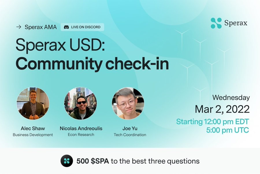 We welcome all community members to check-in and discuss the growth, veSPA, farms, or anything @SperaxUSD during tomorrow's AMA!