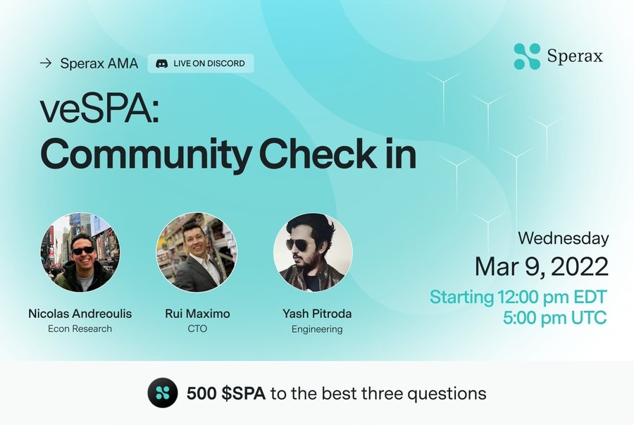 Join @SperaxUSD core team during tomorrow's AMA, drop your veSPA questions in discord or ask live!