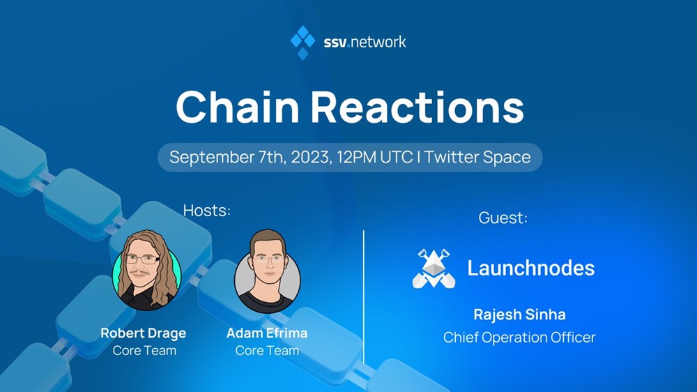 SSV Network will host an AMA on X on September 7th. The discussion will feature core team Robert Drage and Adam Efrima from SSV, along with Rajesh Sinha, the COO of Launchnodes. The conversation will revolve around SSV, the role of institutions in web3, and staking.
