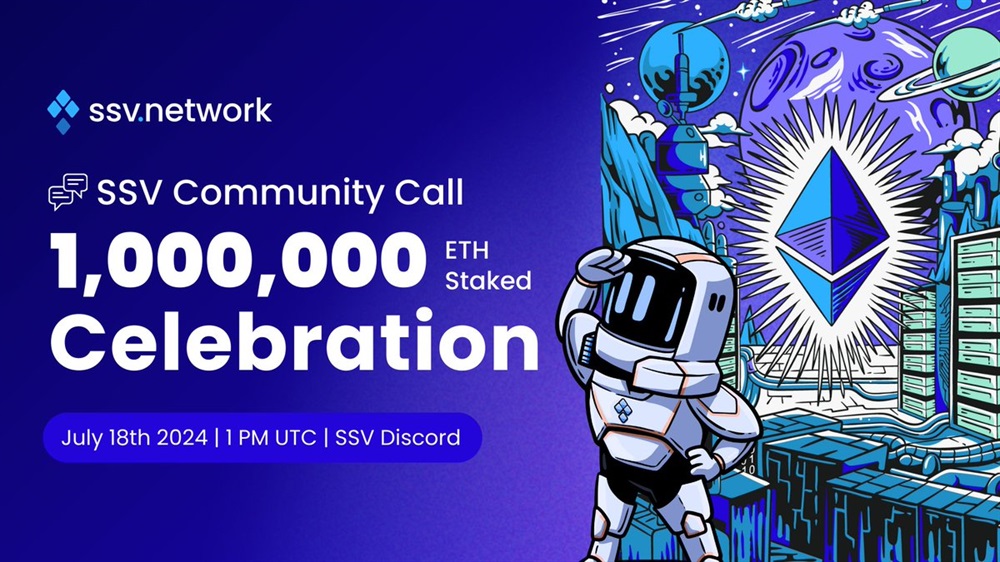 SSV Network is set to hold a community call on July 18th at 1 pm UTC. The discussion will revolve around Simple DVT and the recent achievement of 1 million staked ETH.