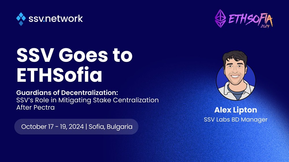 SSV Network is attending ETHSofia 2024 from October 17 to 19 in Sofia. On October 19, Alex Lipton from SSV Labs will give a talk on “Guardians of Decentralization”, discussing SSV’s role in mitigating stake centralization post-Pectra.
