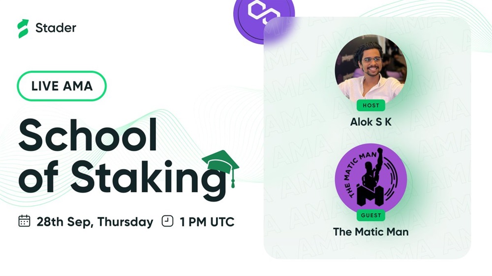 Don't miss our #SchoolOfStaking session with THE MATIC MAN | RIDING THE PURPLE WAVE! 🏄🏽♂️.