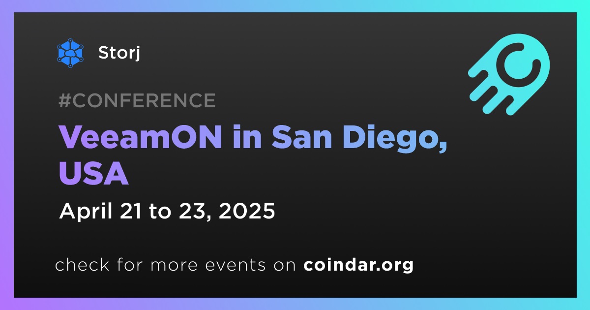 Storj will participate in the VeeamON event scheduled from April 21 to 23, in San Diego.