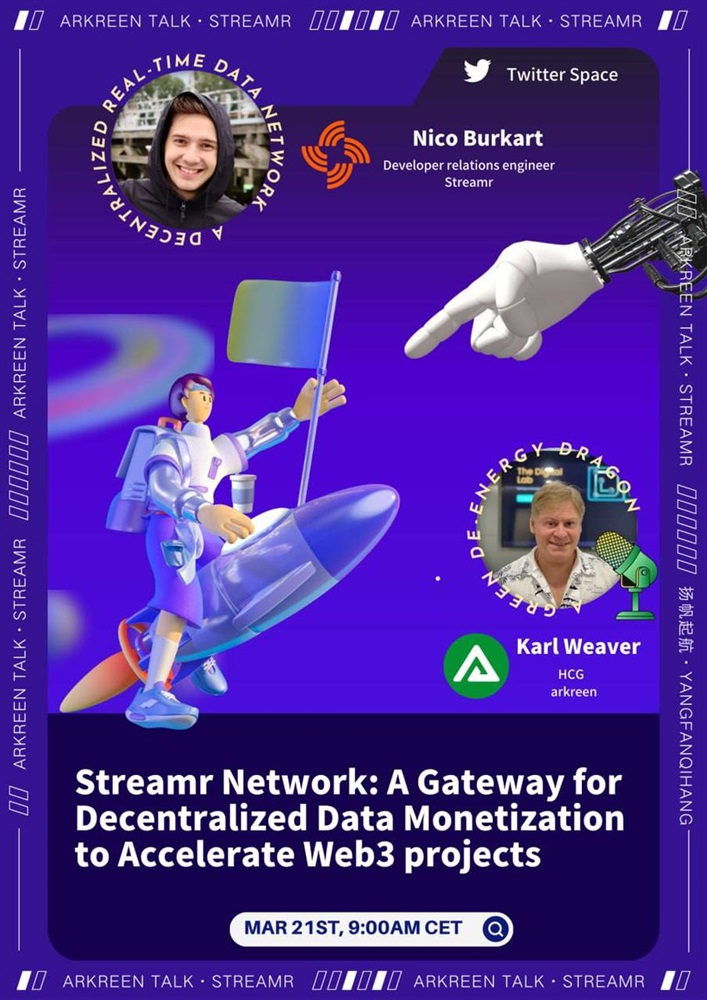 Streamr’s @nicoburkart will join the @arkreen_network Twitter Space at 09:00 CET this Tuesday (21st). Hit that reminder button, prep your coffee, and join the discussion on decentralized data monetisation!