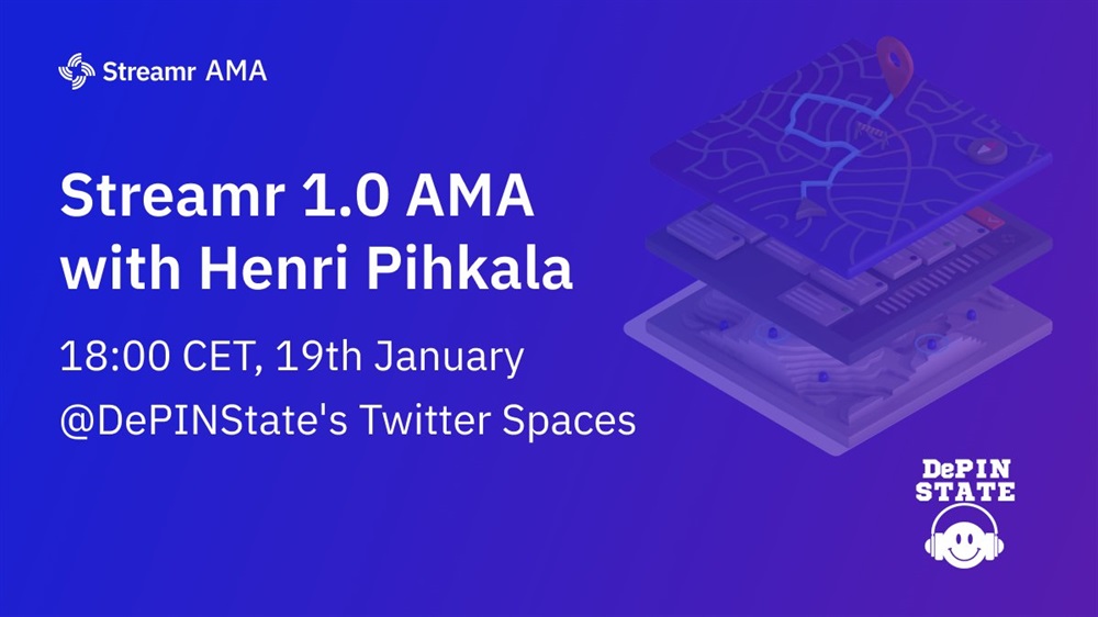 Streamr will host an AMA on X on January 19th at 17:00 UTC. The co-founder of Streamr, Henri Pihkala, will be participating in the event.