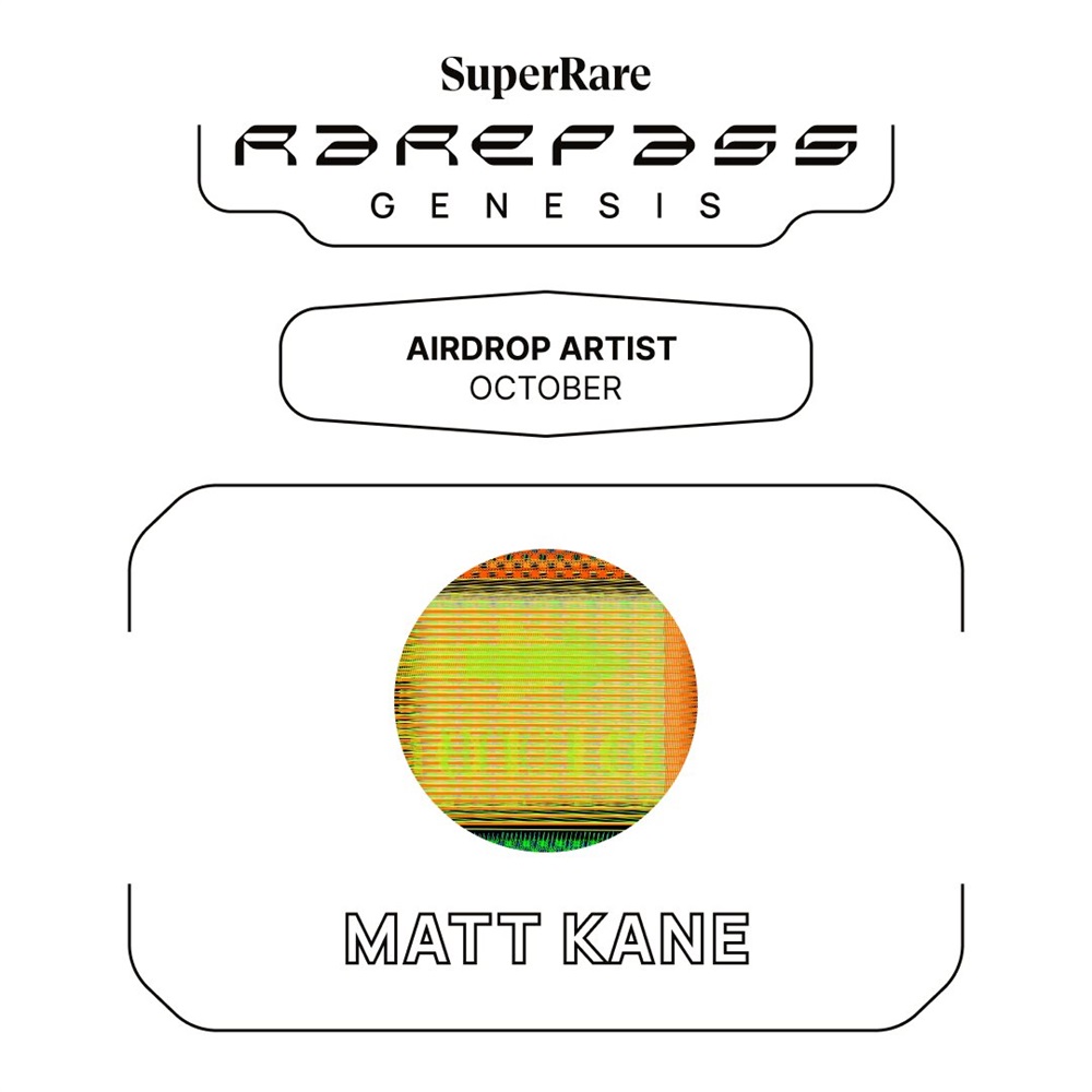 SuperRare has announced that the artist for October’s RarePass airdrop will be Matt Kane. The release is scheduled for October 3rd.