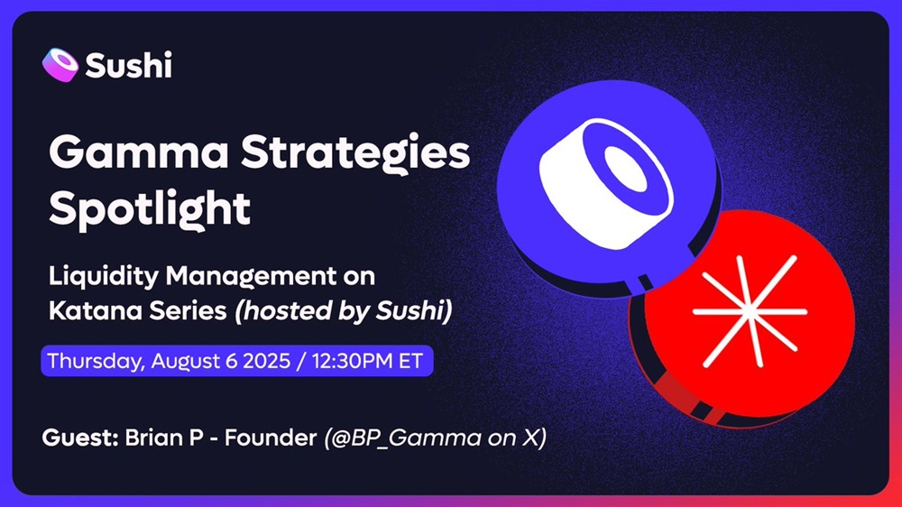 Sushi will host an AMA on X, featuring a discussion on active liquidity-provider strategies, risk management and the integration of Gamma analytics on the Katana platform. The session will take place on August 6th at 16:30 UTC.
