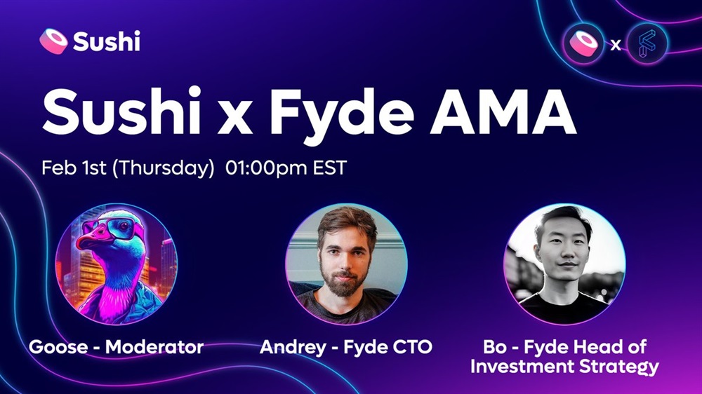 Sushi will host an AMA on X with the team from Fyde Treasury Protocol on February 1st at 6 pm UTC. The discussion will focus on Fyde Treasury Protocol’s current proposal on the forum.