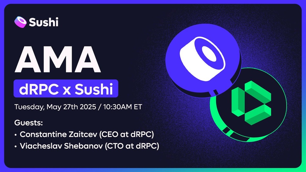 Sushi will host an AMA on X with dRPC on May 27th at 14:30 UTC to examine measures for mitigating maximal extractable value and other related issues.