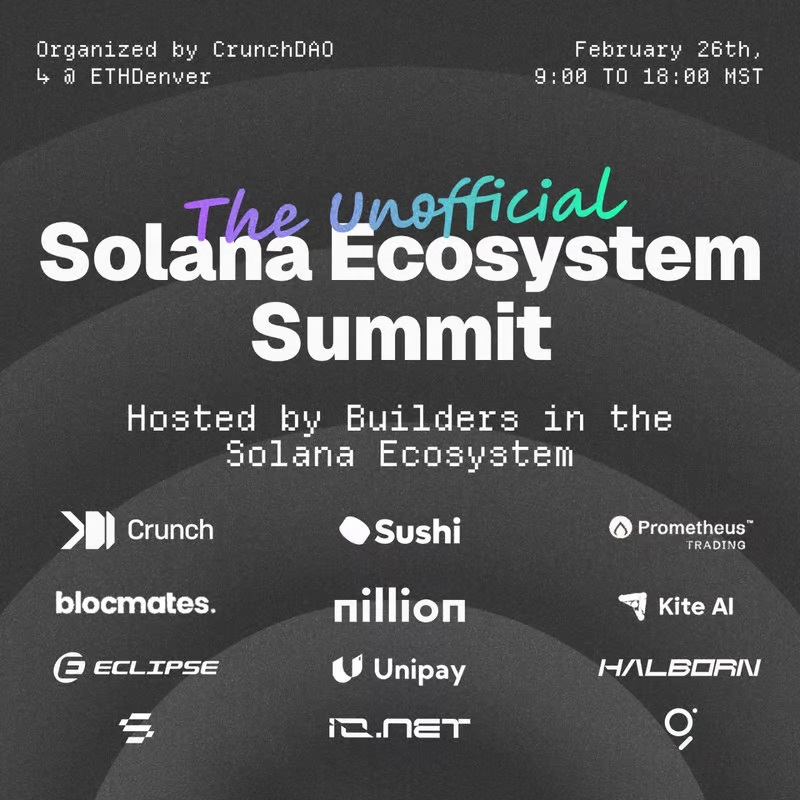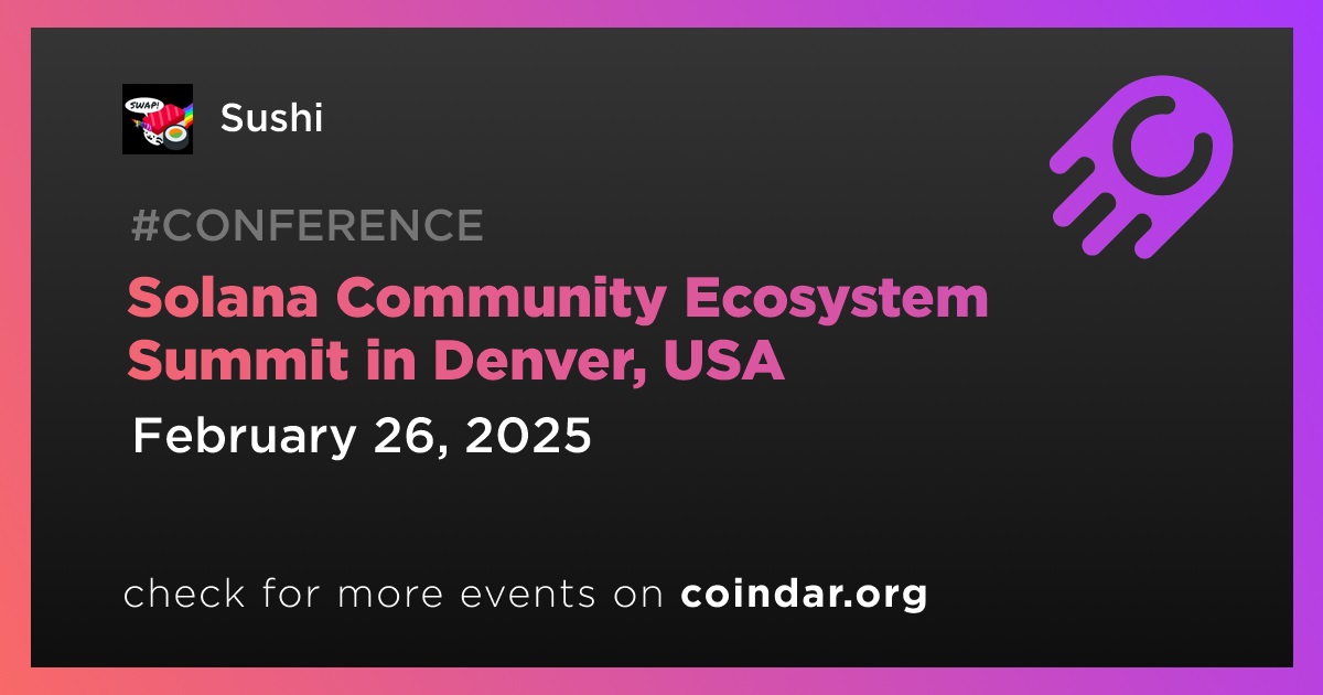 Sushi announces the Solana Community Ecosystem Summit taking place in Denver on February 26th.