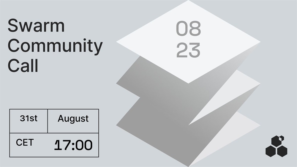 Swarm is set to hold a community call on August 31st at 15:00 UTC. The team at Swarm Foundation will be available to answer questions submitted by the community.