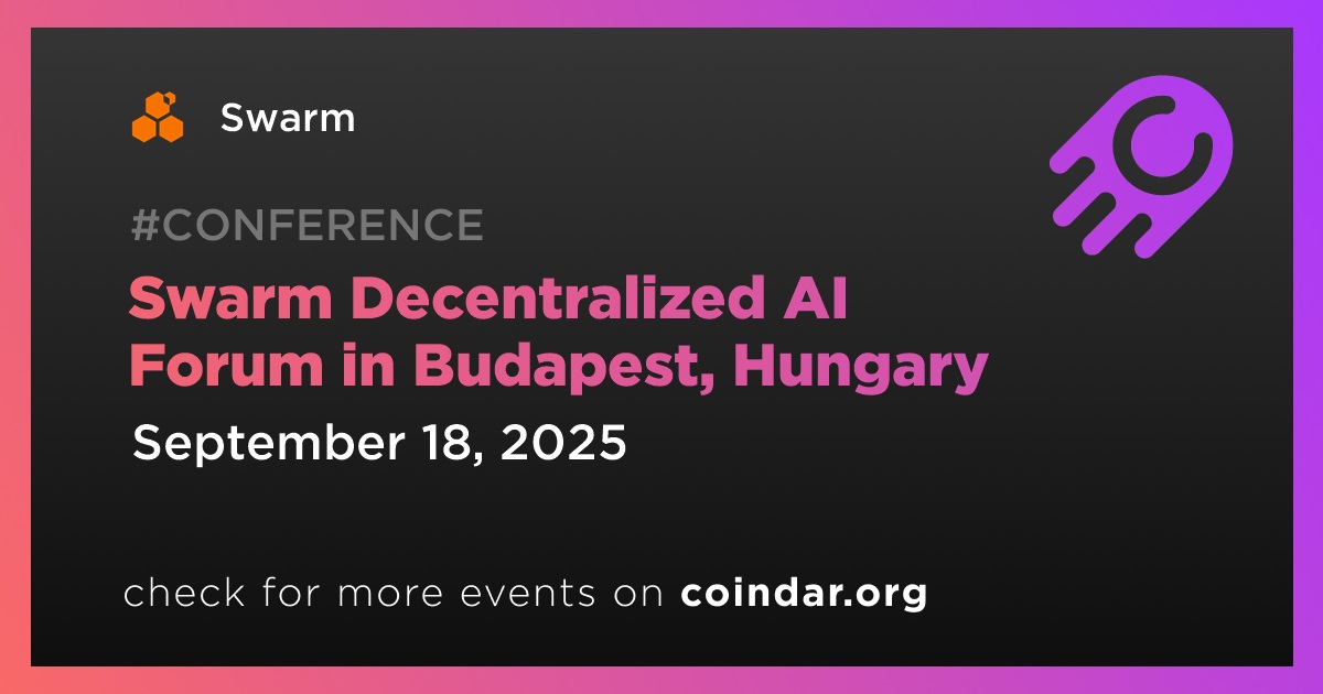 Swarm will organize the Decentralized AI Forum on September 18, as part of Budapest Blockchain Week. The event will take place at Óbuda University and will include workshops, AI agent development sessions, panel discussions, and networking activities focused on decentralized AI, data sovereignty, and open innovation.
