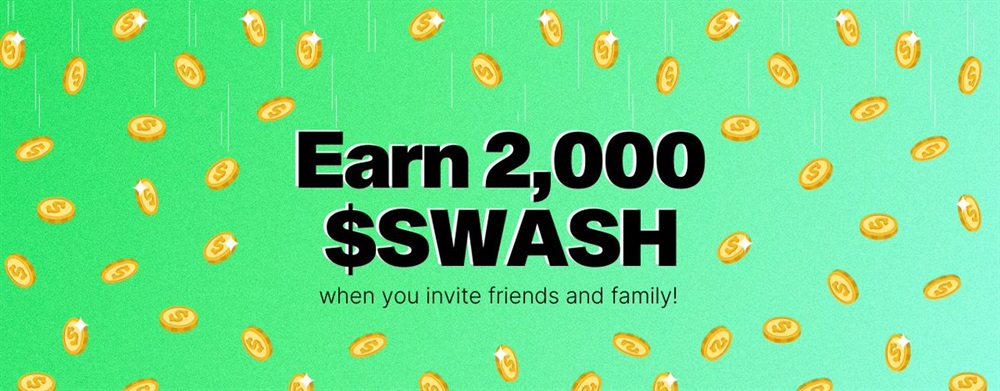 Share your referral link with friends and family, and if you refer the most users in the month, your account will be credited with 2,000 $SWASH tokens.