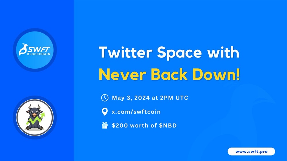 SWFT Blockchain will host an AMA on X featuring NBD Token on May 3rd at 2:00 pm UTC. The event will also include a giveaway where ten participants will have the opportunity to share $200 worth of NBD tokens.