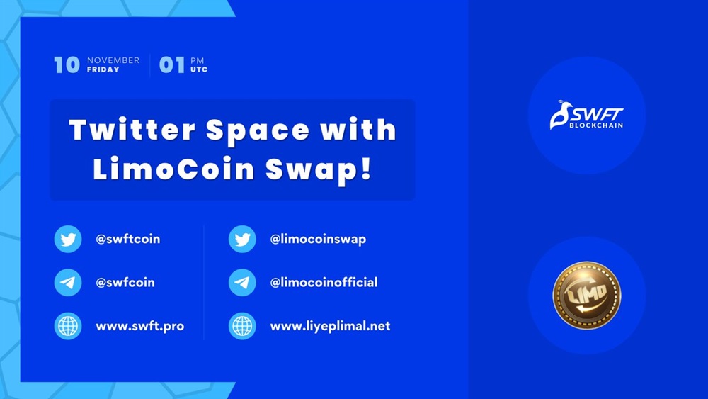 SWFT Blockchain is set to feature Limocoinswap during an AMA on X on November 10th at 1:00 PM UTC.