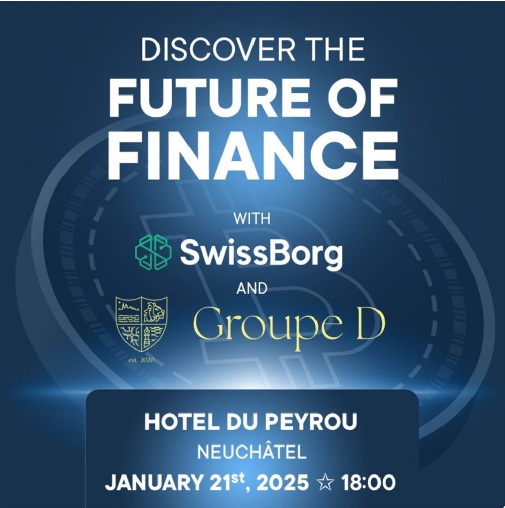 SwissBorg, in collaboration with Groupe D, will host an exclusive “Introduction to Crypto” event in Neuchatel on January 21st at 17:00 UTC.