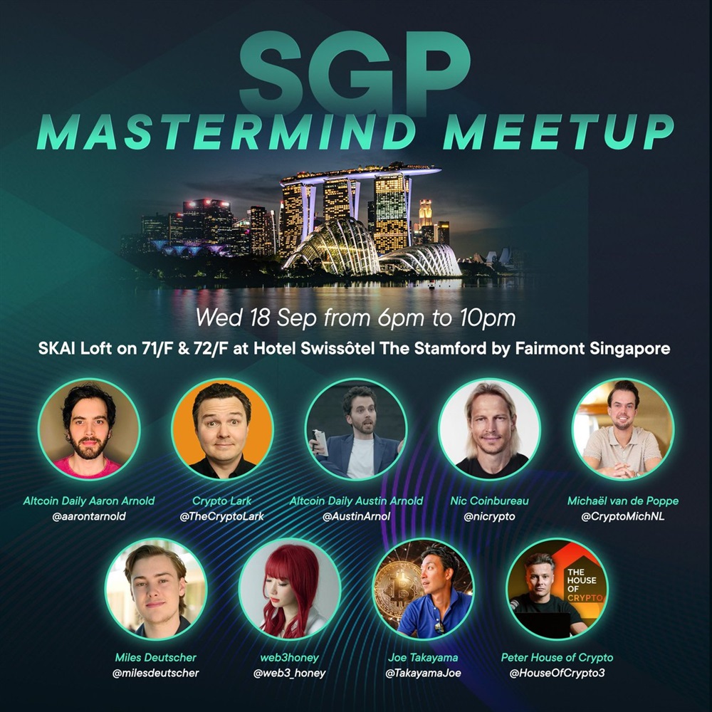 SwissBorg is organizing a MasterMind meetup during the TOKEN2049 event in Singapore on September 18th. The event will feature a strong line-up of Key Opinion Leaders (KOLs) with a global reach of over 20 million people.
