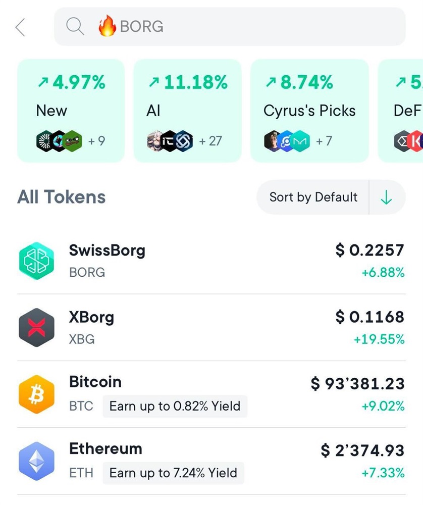The SwissBorg app now has new categories with % change 🔥. More is coming to the Marketplace next week. Can you guess what’s next❓Drop your guess below. 👇🏼