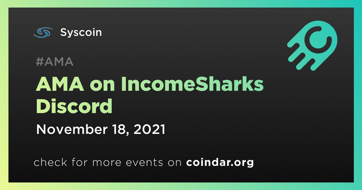 Syscoin SYS: AMA on IncomeSharks Discord