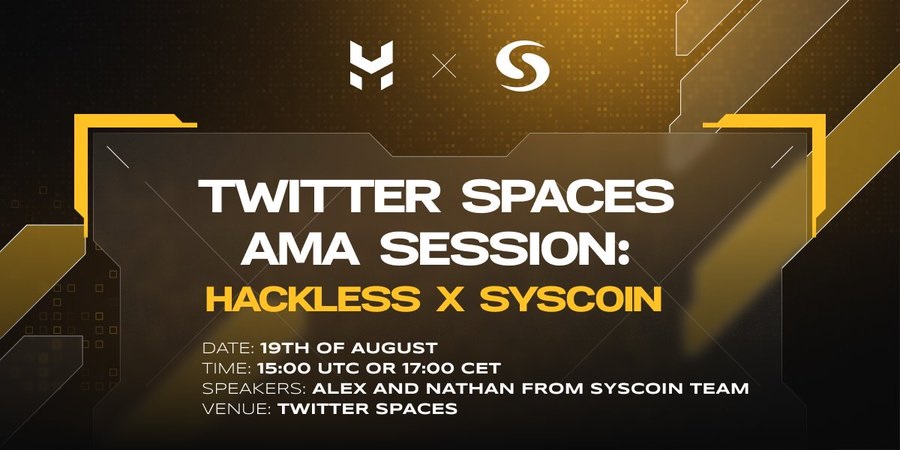 Join the @hackless_io Twitter Space this Friday for an AMA with #Syscoin's @proguerra and @moderndiogenese! twitter.com