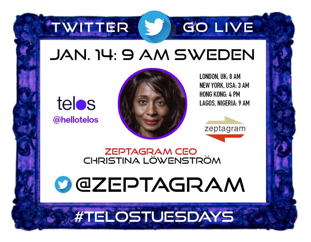 Join us for another #TelosTuesdays Live Twitter! Meet CEO of @Zeptagram, Christina Lowenstrom, learn about the new music 🎵 rights trading platform: zeptagram.com