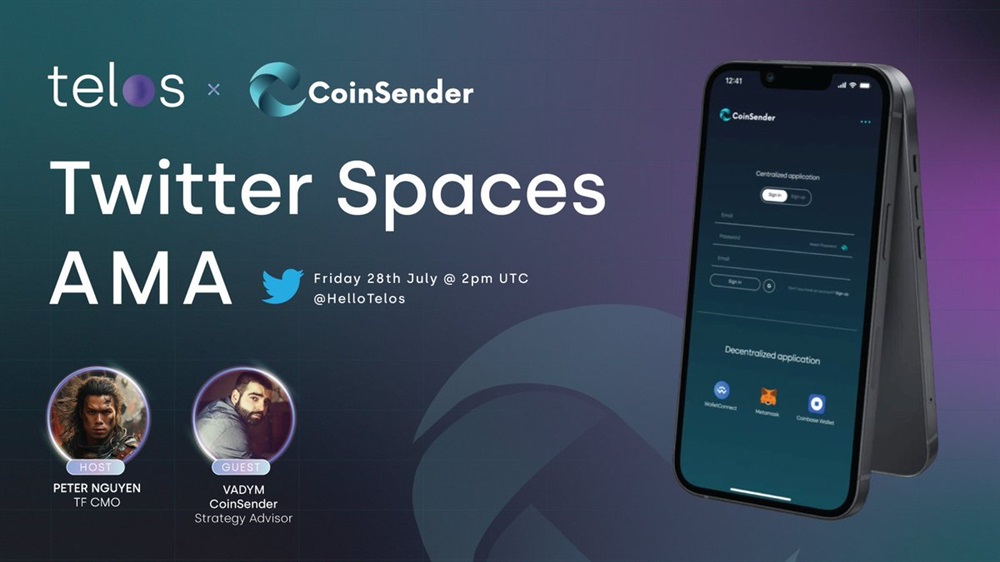 Telos will host an AMA on Twitter with CoinSender. The discussion will focus on the future of token management and the partnership between Telos and CoinSender. CoinSender strategy advisor, Vadym Bestaiev, will be a special guest at the event.