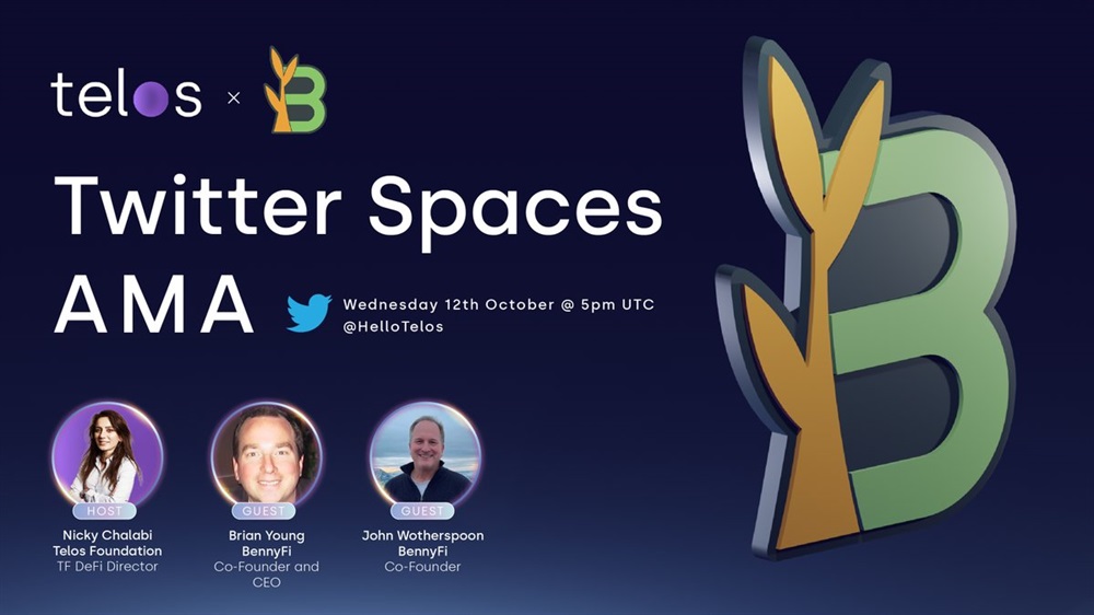Telos is set to host an AMA with BennyFi on X on October 12th. The discussion will focus on the future of the fundraising space.