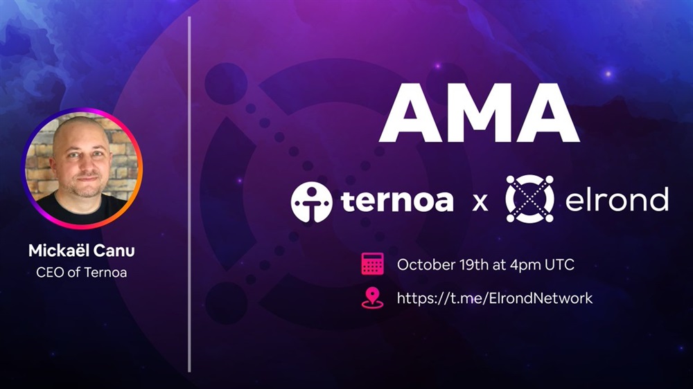 Ternoa’s CEO @CanuMickael will be doing an #AMA with @ElrondNetwork’s community, answering YOUR questions about Ternoa, testnet, & Elrond collaborations!