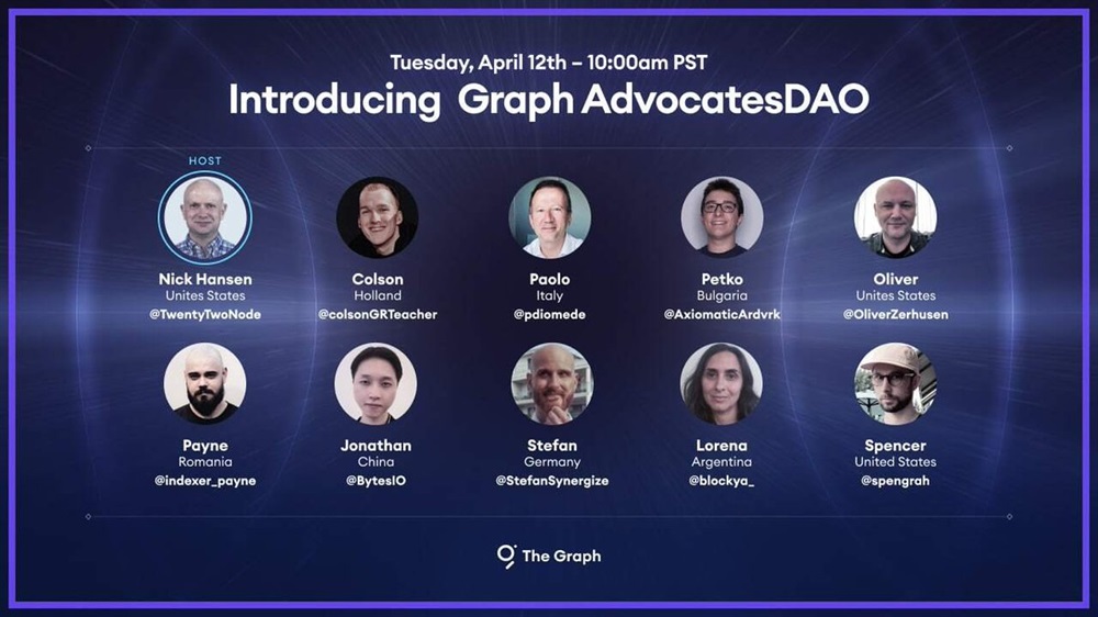 Learn more about the Graph AdvocatesDAO next week on Tuesday, April 12th as @TwentyTwoNode hosts a Twitter Space to introduce DAO members & discuss the DAO's future 👨🚀👩🚀