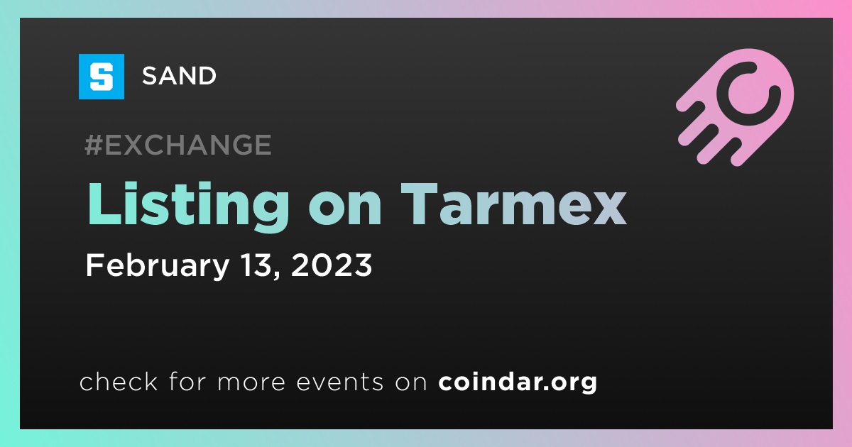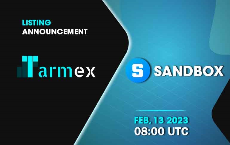 Tarmex will list @TheSandboxGame #SAND token on 2023.02.13 at 08:00 UTC