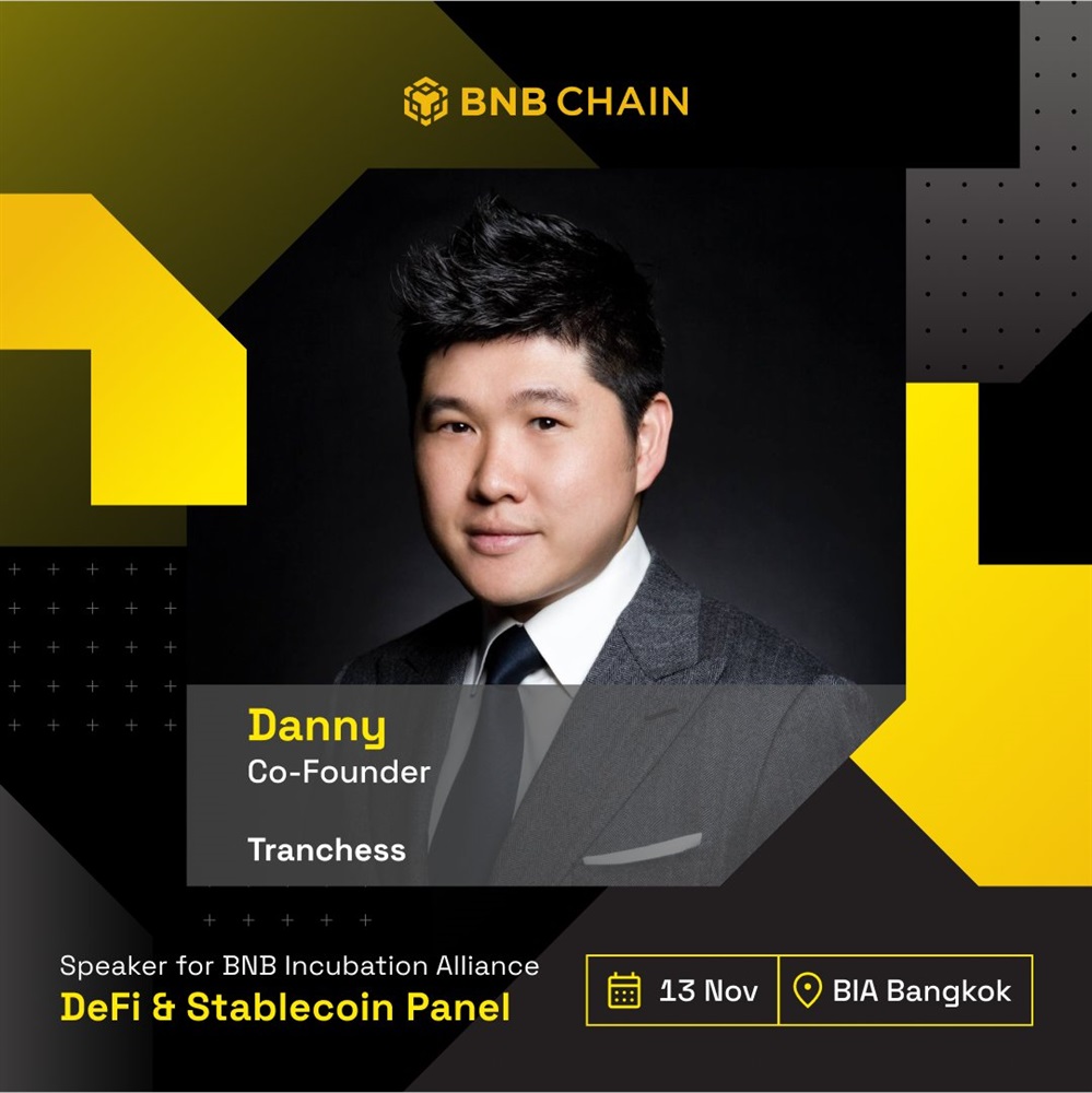 Tranchess announced that its co-founder, Danny Chong, will be speaking at a panel on DeFi and stablecoins during the BNB Chain BNB Incubation Alliance in Bangkok on November 13th.