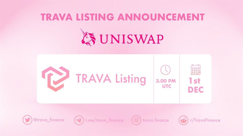 🔥Trava is delighted to announce that $TRAVA will be listed on @Uniswap at 3.00 P.M UTC December 1st.